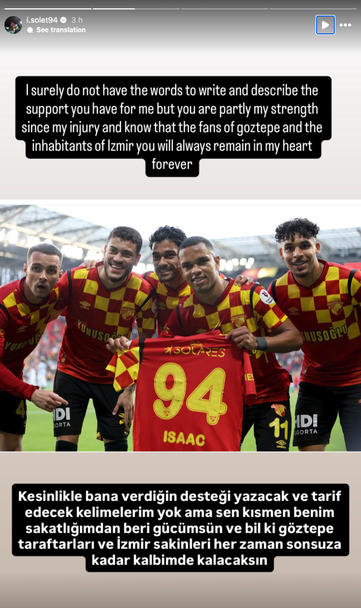Със сигурност нямам думи да напиша или опиша поддръжката, която ми оказахте, само че вие частично сте моята мощ след травмата ми и би трябвало да знаете, че почитателите на Гьозтепе и жителите на Измир постоянно ще останат в сърцето ми.