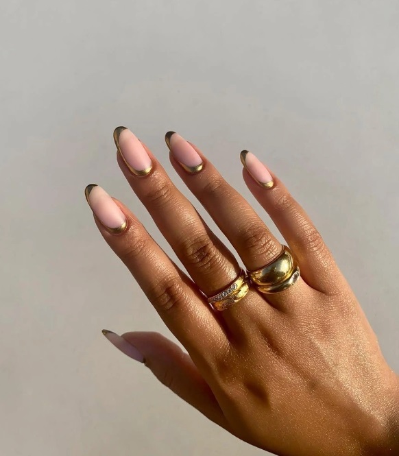 Ако имате планувани значими събития този месец, тогава не се колебайте да изберете сходна алтернатива. Върху телесна основа нарисувайте дъга със златен лак. Ще получите доста грациозен и моден дизайн, който ще се хареса на почитателите на стила „ остарели пари “.