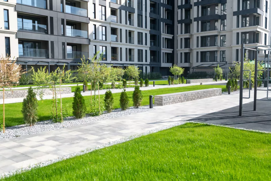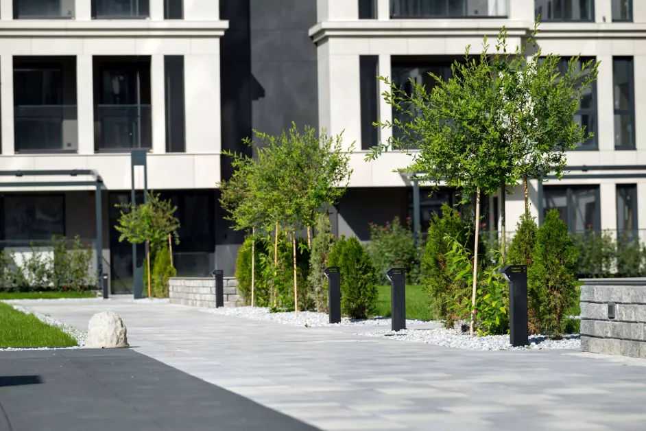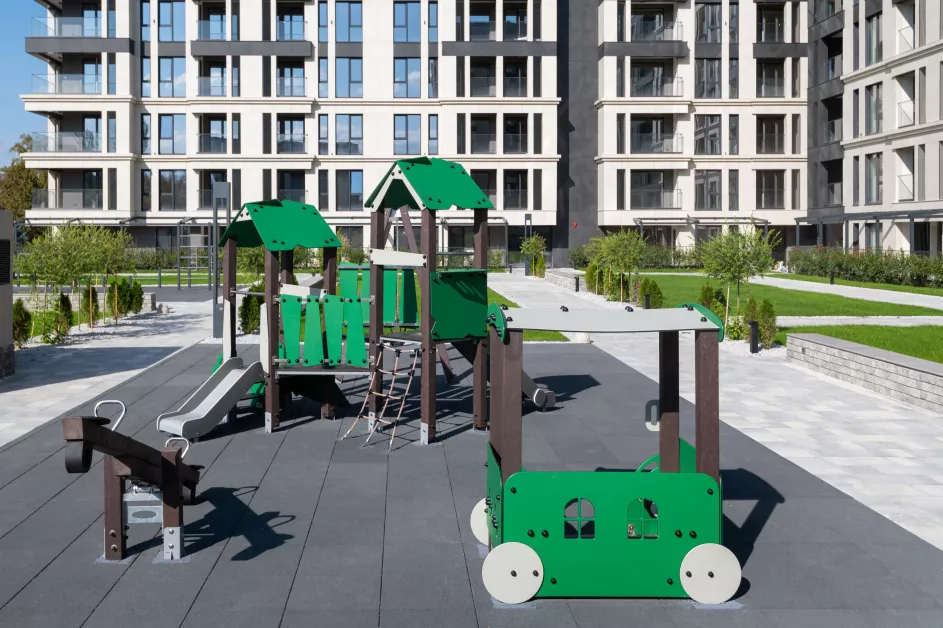 На разположение на живеещите в комплекса има вътрешен двор, самостоятелен като стилно завършено парково пространство с градинско осветяване, дизайнерски пейки, съвременен детски ъгъл и фитнес площадка.