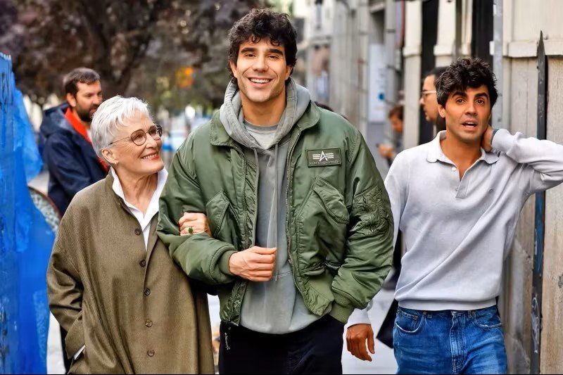 Глен Клоуз, Хавиер Калво и Хавиер Амброси се разхождат по улиците на Мадрид, през октомври 2025 година