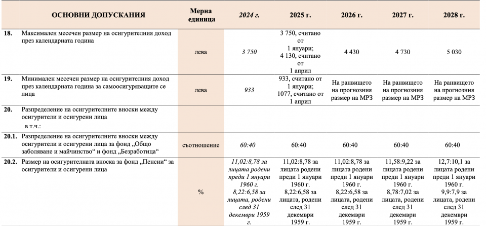 Хиляди българи от през днешния ден ще заплащат по-високи осигуровки за пенсия и здраве. От 1 април минималният застрахователен приход за самоосигуряващите се, земеделските стопани и тютюнопроизводителите се покачва от 933 на 1077 лева, като се изравнява с минималната заплата. Максималният застрахователен приход също се покачва от 3750 на 4130 лева По-висока е и здравната вноска за безработни и други българи, които не са обезпечени нито от шеф, нито от страната, нито пък са самоосигуряващи се. Поскъпва откупуването на стаж за пенсия.