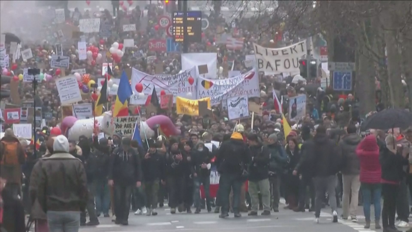 Хиляди демонстрираха в Брюксел против имунизационната акция и условието на хигиеничен пропуск за достъп до заведения и културни събития.