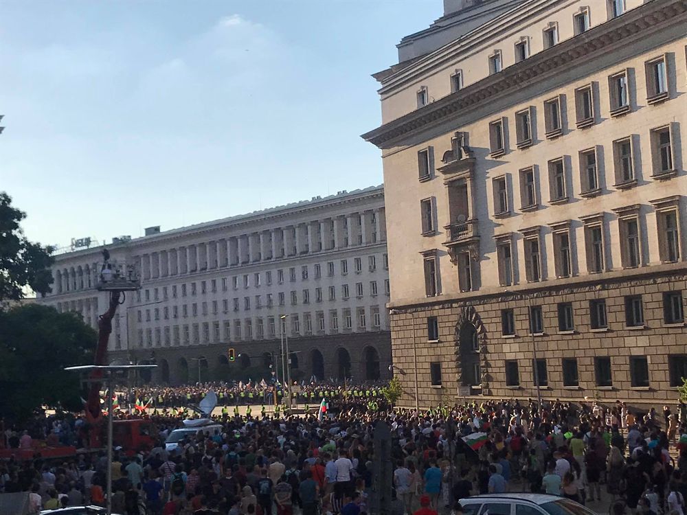 Първоначално двата митинга се събраха на метри един от различен - пред Президентството и пред Министерския съвет. Между двете демонстрации имаше двоен полицейски кордон, който разделя тротоарите на от двете страни на бул. " Цар Освободител ".