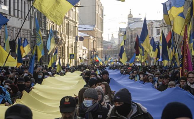 Хиляди хора излязоха през днешния ден по улиците на втория по величина град в Украйна - Харков, с плакати "Харков е Украйна " и "Спрете съветската експанзия ", в миг, когато страната се готви за допустима съветска атака, съобщи "Ройтерс ".