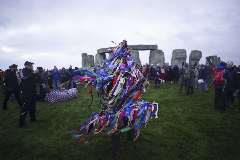 Хиляди хора посрещнаха с радостни възгласи изгрева над Стоунхендж в Южна Англия в деня на зимното слънцестоене.