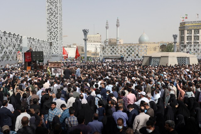 Хиляди иранци излязоха по улиците на Техеран, с цел да отдадат респект на почитан член на Корпуса на гвардейците на Ислямската гражданска война, който в неделя беше убит от двама души на мотоциклет, съобщи Асошиейтед прес. Хората издигаха юмруци и скандираха: „ гибел на Израел “.