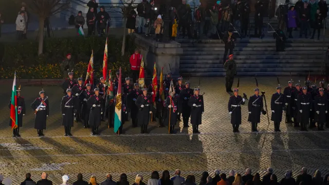 Като главнокомандващ президентът Румен Радев одобри почетния строй. Ключов миг от церемонията бе и наличието на знамената-светини, знак на най-възвишените обичаи и добродетели на българското войнство, напомнящи за героичния героизъм на българската войска.