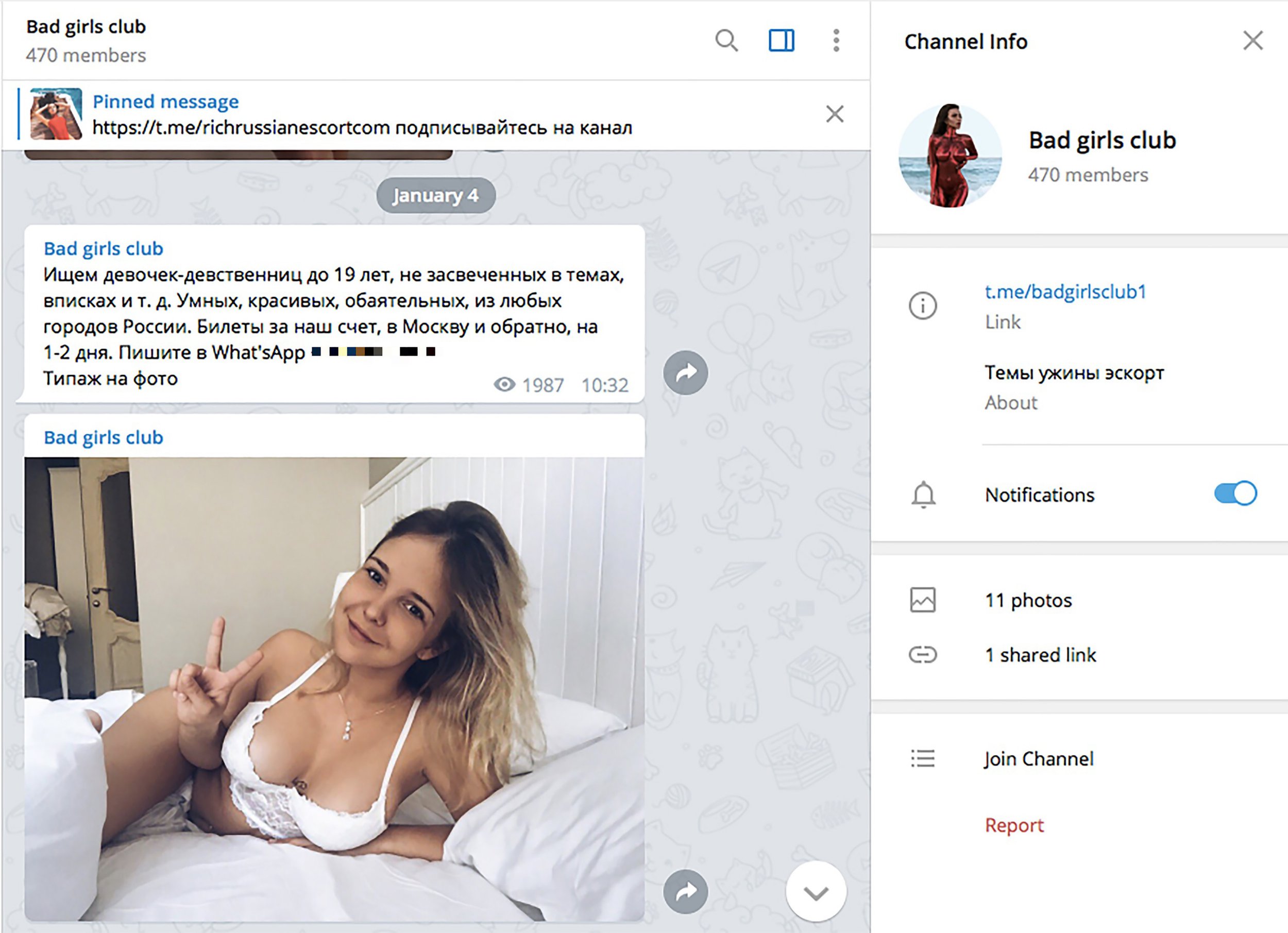 „ Търсим девойки по-млади от 19 години. Интелигентни, хубави и шармантни, без значение от кое място в Русия. Плащаме им пътя до Москва и назад “, гласят нормално обявите.