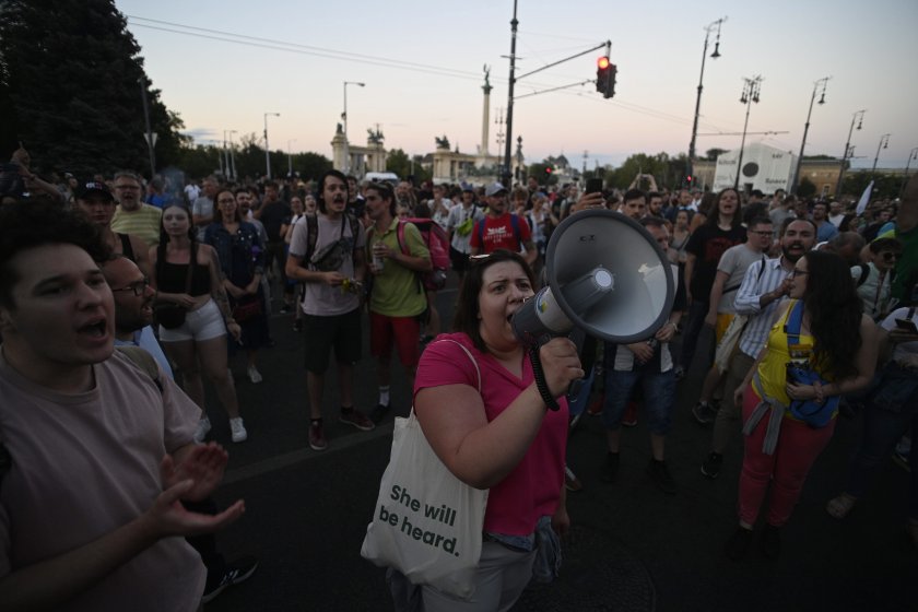 Хиляди протестиращи унгарци блокираха центъра на Будапеща.