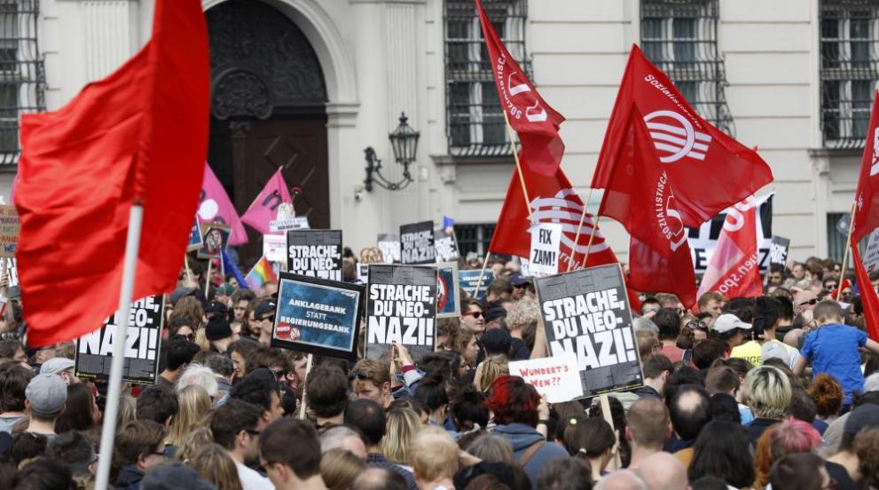 Протестът бе предизвикан от абсурда с скрито снимано видео, което демонстрира вицеканцлера и водач на крайнодесните Хайнц-Кристиан Щрахе както наподобява да предлага държавни контракти в подмяна на политически услуги в Ибиза през 2017 година По-рано през днешния ден Щрахе подаде оставка, напомня ДПА.