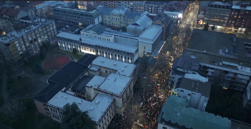 В Деня на държавността - националният празник на Сърбия, демонстрацията притегли студенти и локални поданици. Протестното придвижване не стихва повече от година след нещастието в Нови Сад, където рухнала козирка на жп гарата в града лиши живота на 16 души.