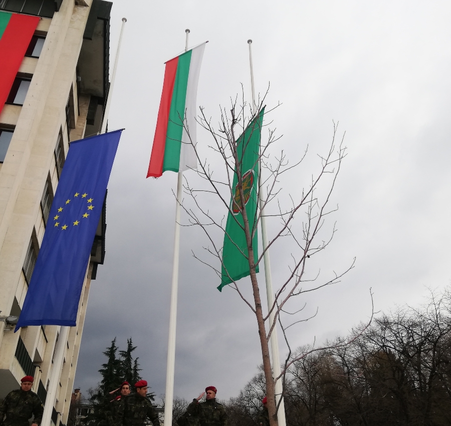 Преди тръгването му пред постройката на общината под звуците на националния тържествено бяха издигнати бяха знамената на Република България, Стара Загора и Европейския съюз.