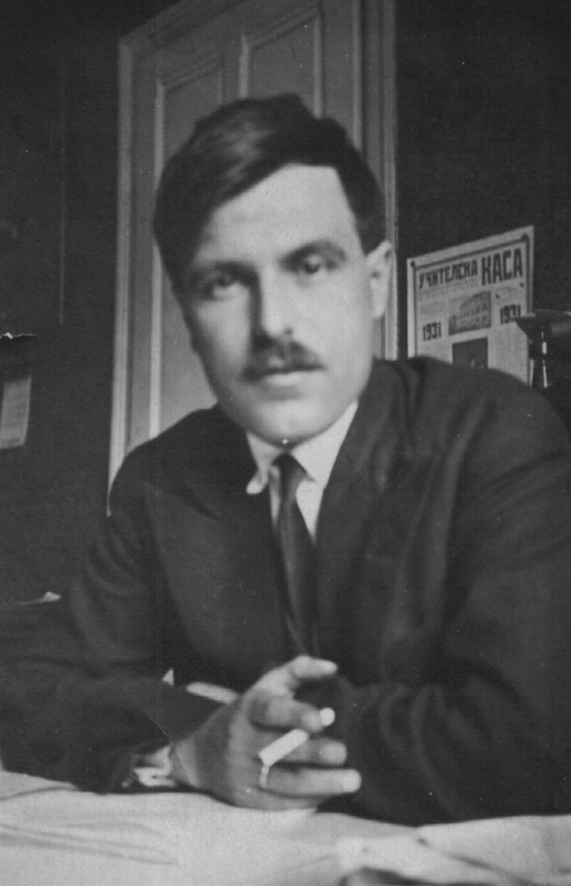 Снимка на Ангел Каралийчев с посвещение за Цвета и Владимир Василеви. На гърба надпис: " На Цвета и Владо спомен от Ангела ", Държавна организация „ Архиви “