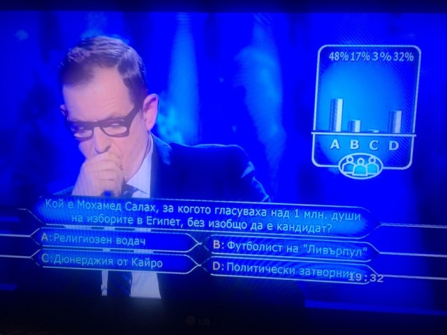 Хитовото предаване " Стани богат ", което към този момент се излъчва по Българска национална телевизия, още веднъж прикова вниманието към себе си. Този път не участник, а хората в залата " блеснаха " с знания на въпрос за един от най-оборотните футболисти в последната година - Мохамед Салах.