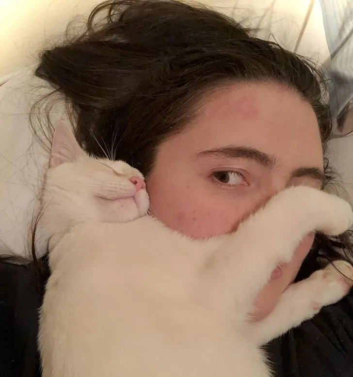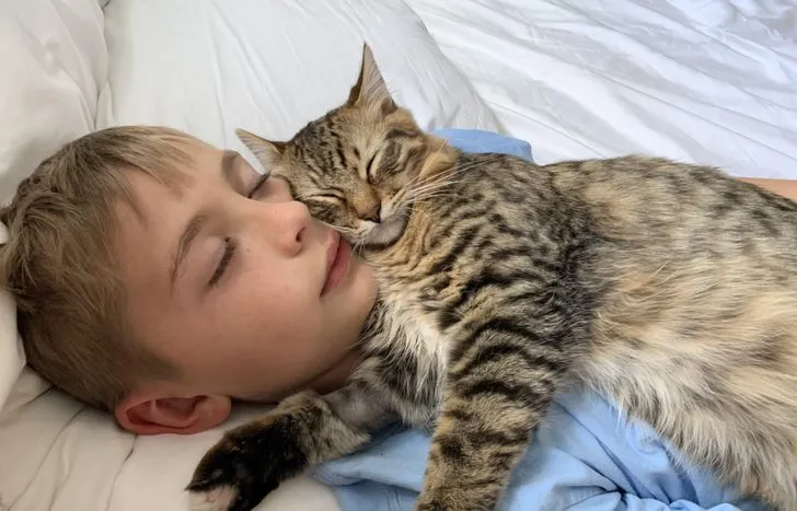 3. „ Всяка заран нашата котка търпеливо чака пред вратата на спалнята на синовете ми, с цел да се разсънят. И не е за хранене – просто няма самообладание да ги види. “