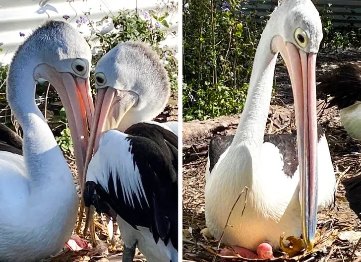 16. След като чака 6 години за бебе, тази двойка пеликани е толкоз влюбена в новороденото си пиленце.