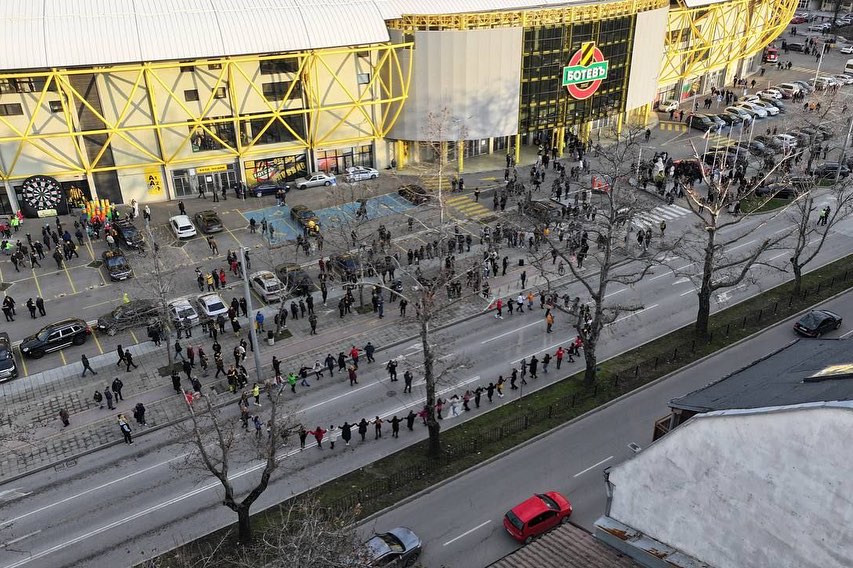 Хоро се изви минути преди финала за Суперкупата на България сред Ботев и Лудогорец. Инициатива е благотворителна на Ботав и " Хората за хората ". Хорото затвори закратно бул. " Източен ".