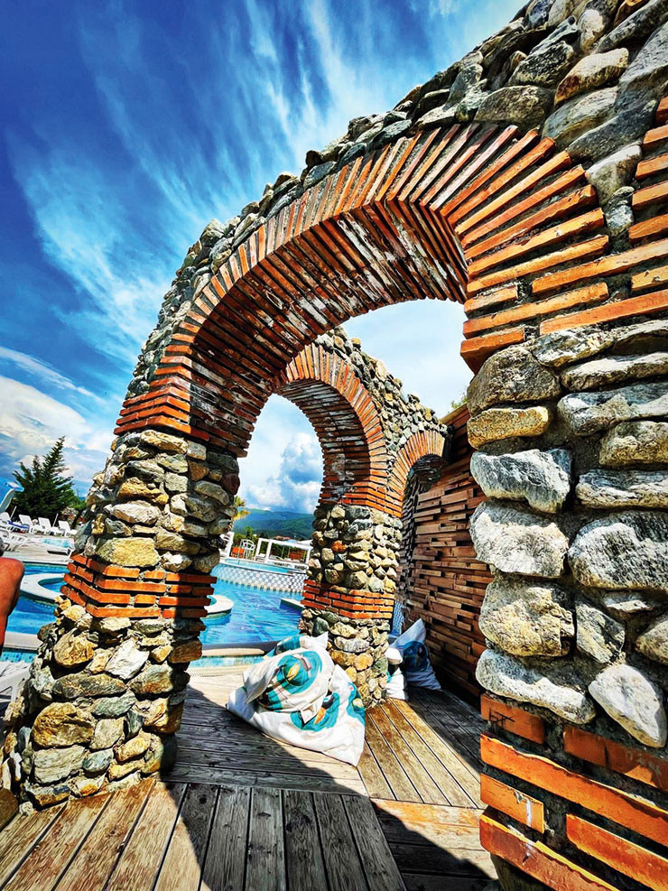 Спа и уелнес зона Елегантният дизайн и деликатно подбраните елементи основават спокойна и релаксираща атмосфера, в която гостите могат да се насладят на разнообразни процедури и лечения. На повърхност от повече от 1000 кв.м са ситуирани минерални басейни с друга температура, зона за отмора, шест сауни и три парни бани, масажни студиа, кабинети за физиотерапия и рехабилитация, медицински кабинет и фитнес, които оферират всичко належащо за предварителна защита и възстановителни процедури.