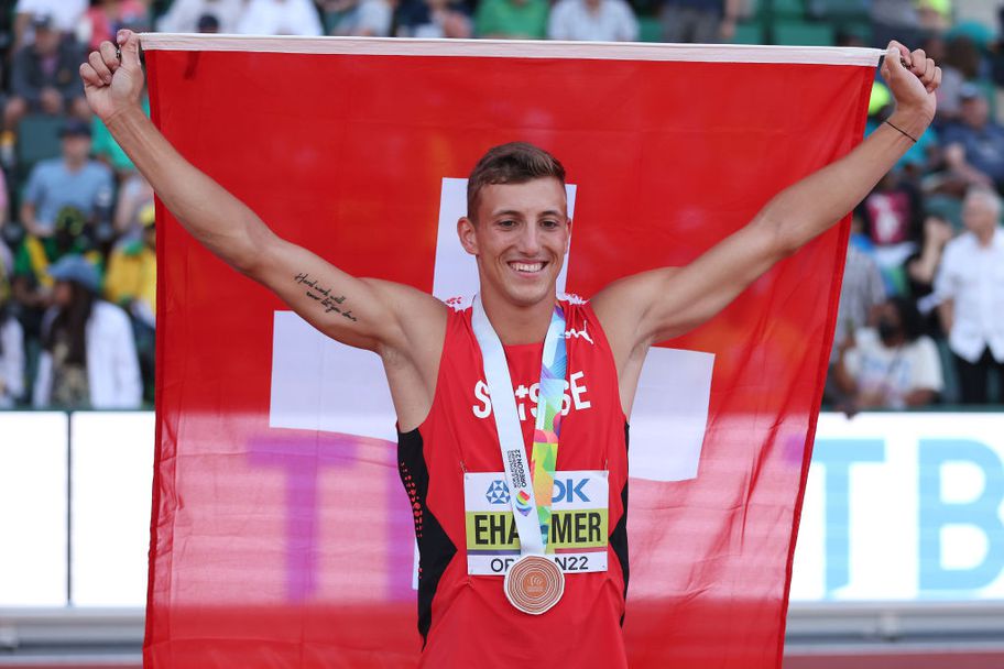 Световният рекордьор в скока на дължина в границите на десетобой Симон Ехамер, който реши в Юджийн да се концентрира единствено в тази дисциплинираност, се пребори за бронзовия орден с 8.16 метра (0.5 м/сек). Швейцарецът оглавява международната класация за сезона с 8.45 м.