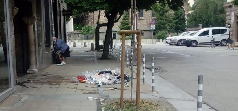 Вандалската постъпка се случва тъкмо в самия център на ул. „ Съборна ”. Минувачите трябваше да заобикалят, защото боклуците бяха разхвърляни на самия тротоар.