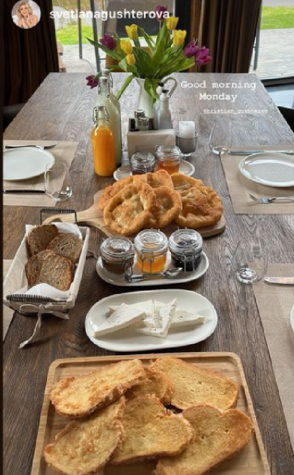 Християн Гущеров е прочут с любовта си към алкохола и храната. Любимата му Светлана Гущерова не може да му смогне на апетита и непрекъснато го глези с калорийни бомби. Пенсионираната плеймейтка, която тези дни роди четвъртото си дете, разгласява фото от закуската на фамилията. Най-голямата порция е за Мечо, както галено го назовава многодетната майка. Християн Гущеров омита по 6 пържени филийки със сладко и сирене, няколко мекици и хляб самун.