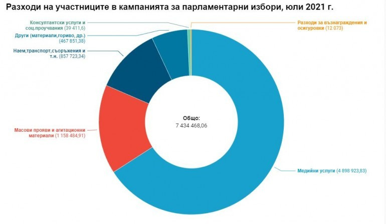 Отчетите на участвалите в последните парламентарни избори партии и обединения демонстрират, че медийните услуги са главното перо в техните разноски. За следващ път пренебрежимо ниски са средствата за труд, а явно от политическите обединения не са се допитвали постоянно до социологически и консултантски организации. Източник: dnesplus.bg