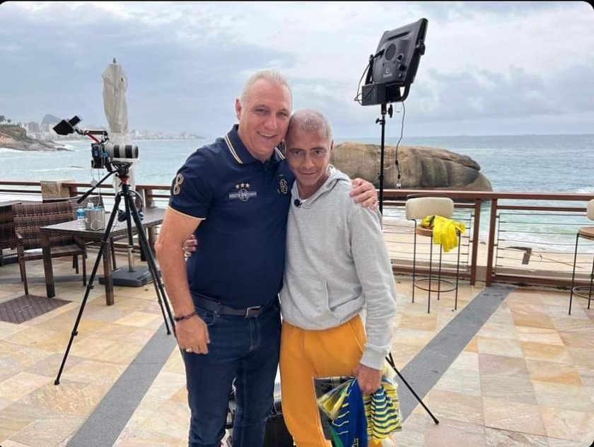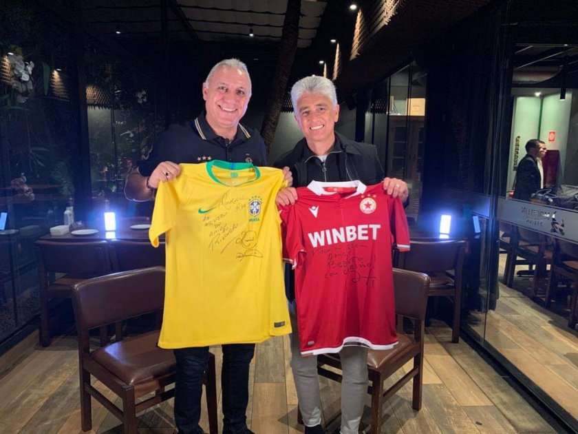 Двамата театралничат на фотография с фланелки, които са разменили при срещата – в ръцете на Ицо е тази с номер 11 на селесао и името на Ромарио, а бразилецът държи българския екип от Мондиал 1994 с осмицата.
