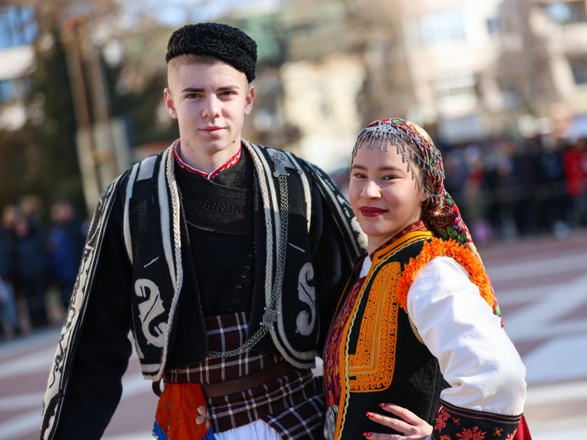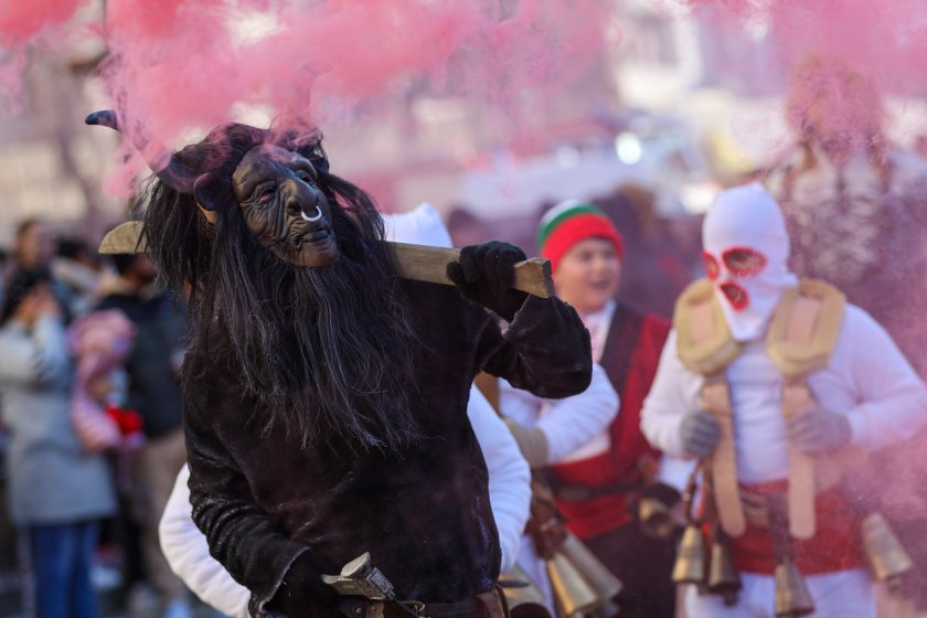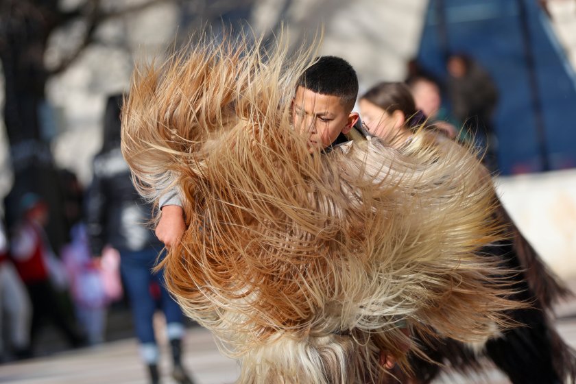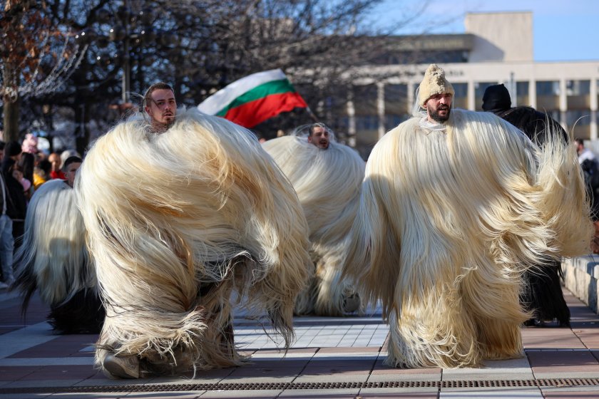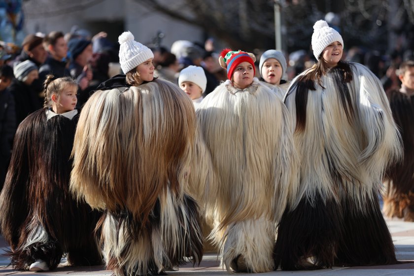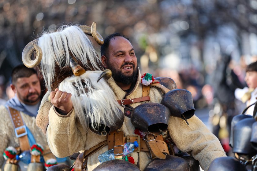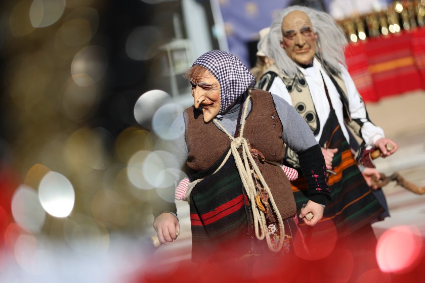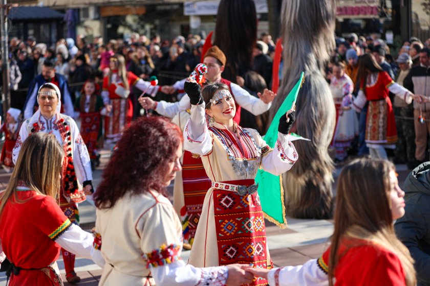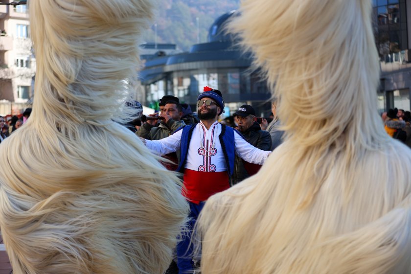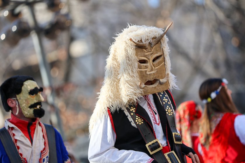 Hundreds of mummers (kukeri) in traditional and colourful costumes paraded to the sound of copper bells in Blagoevgrad, within the festival `Mummers Games` in the Pirin Mountain.