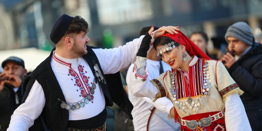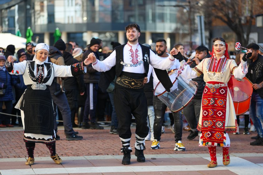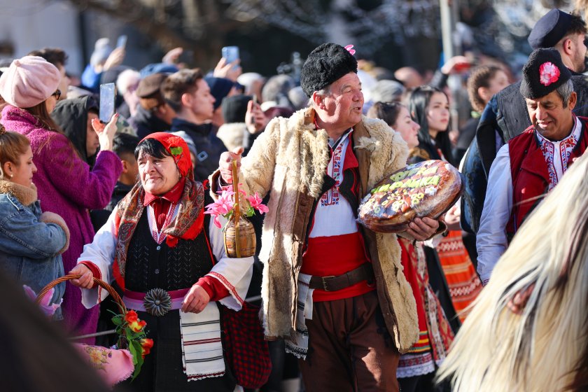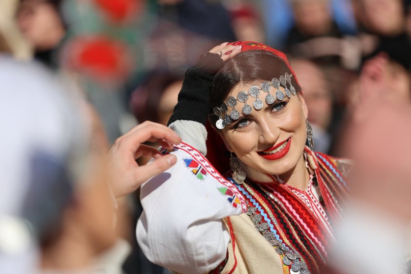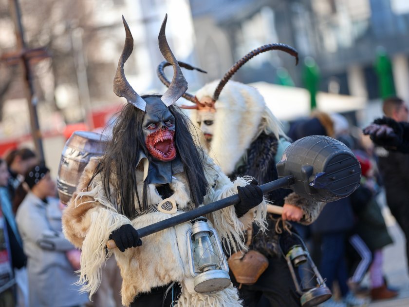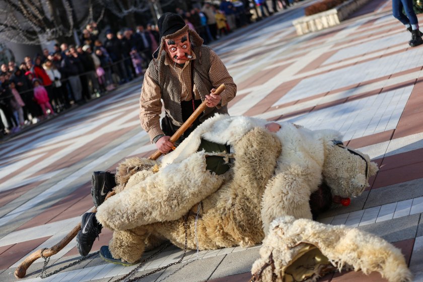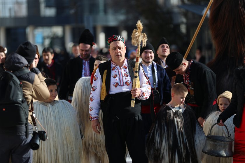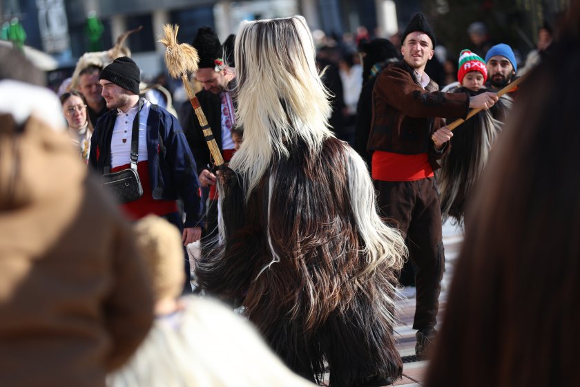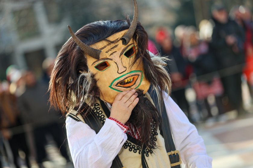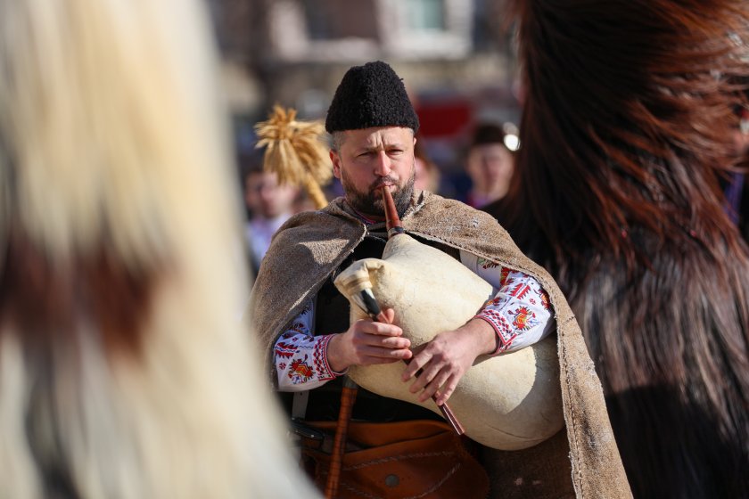 Hundreds of mummers (kukeri) in traditional and colourful costumes paraded to the sound of copper bells in Blagoevgrad, within the festival `Mummers Games` in the Pirin Mountain.