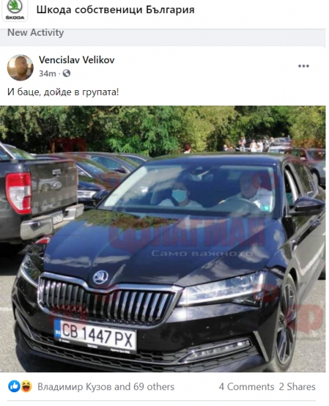 Фен групата на Шкода във Фейсбук приветства бившия премиер Бойко Борисов за новата му кола