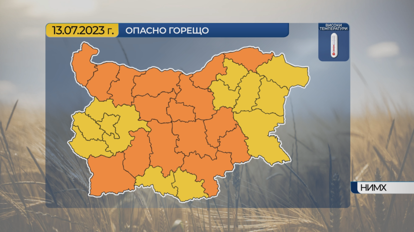 И през днешния ден ще се задържи слънчево , в композиция със слаб вятър с посока от изток. Ще бъде още по-горещо, по отношение на през вчерашния ден. Максималните температури ще са сред 33° и 38°, в София - към 33°. Чувствително по-хладно ще се задържи по морското крайбрежие.
