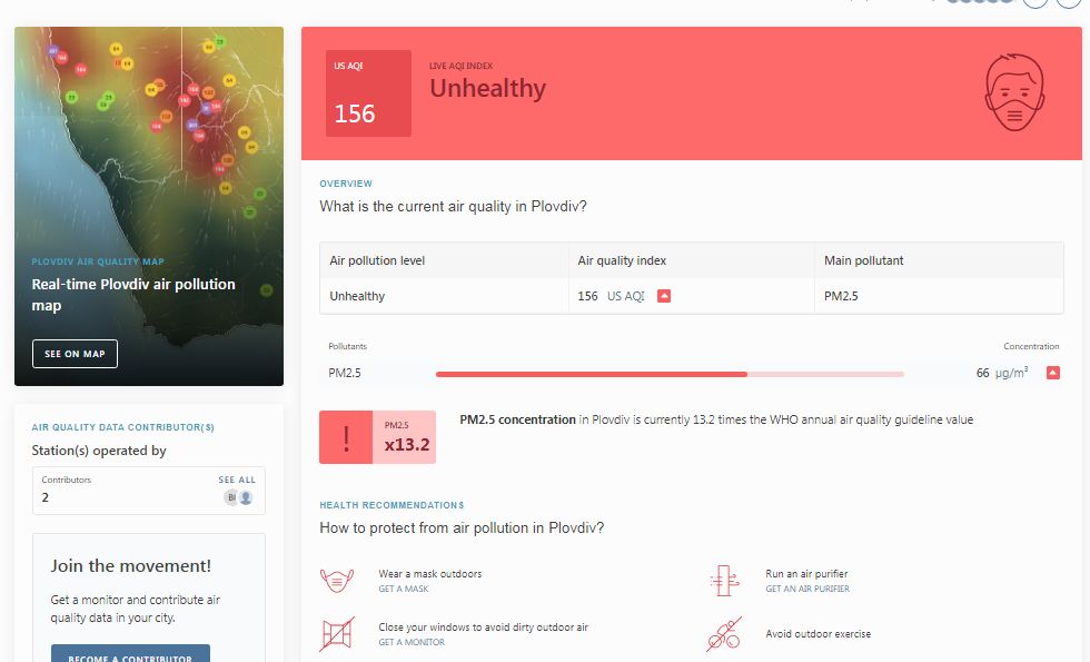 И през днешния ден въздухът в Пловдив е най-лош в страната. Станциите, следящи качеството на атмосферния въздух регистрират превишени правила на фините прахови частици от вида ФПЧ10.