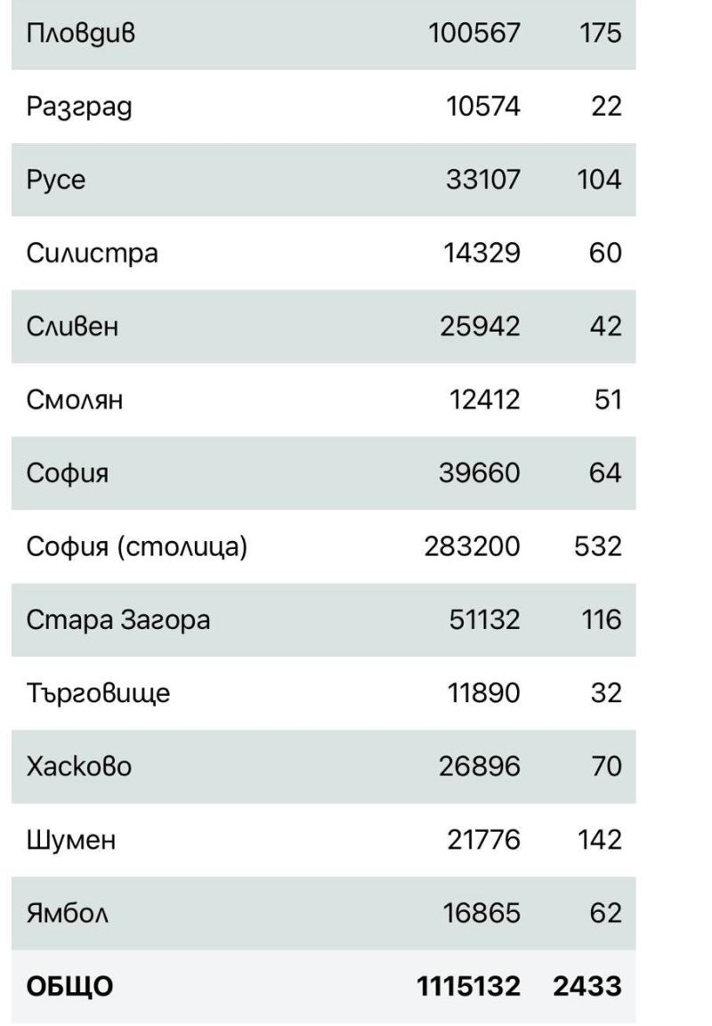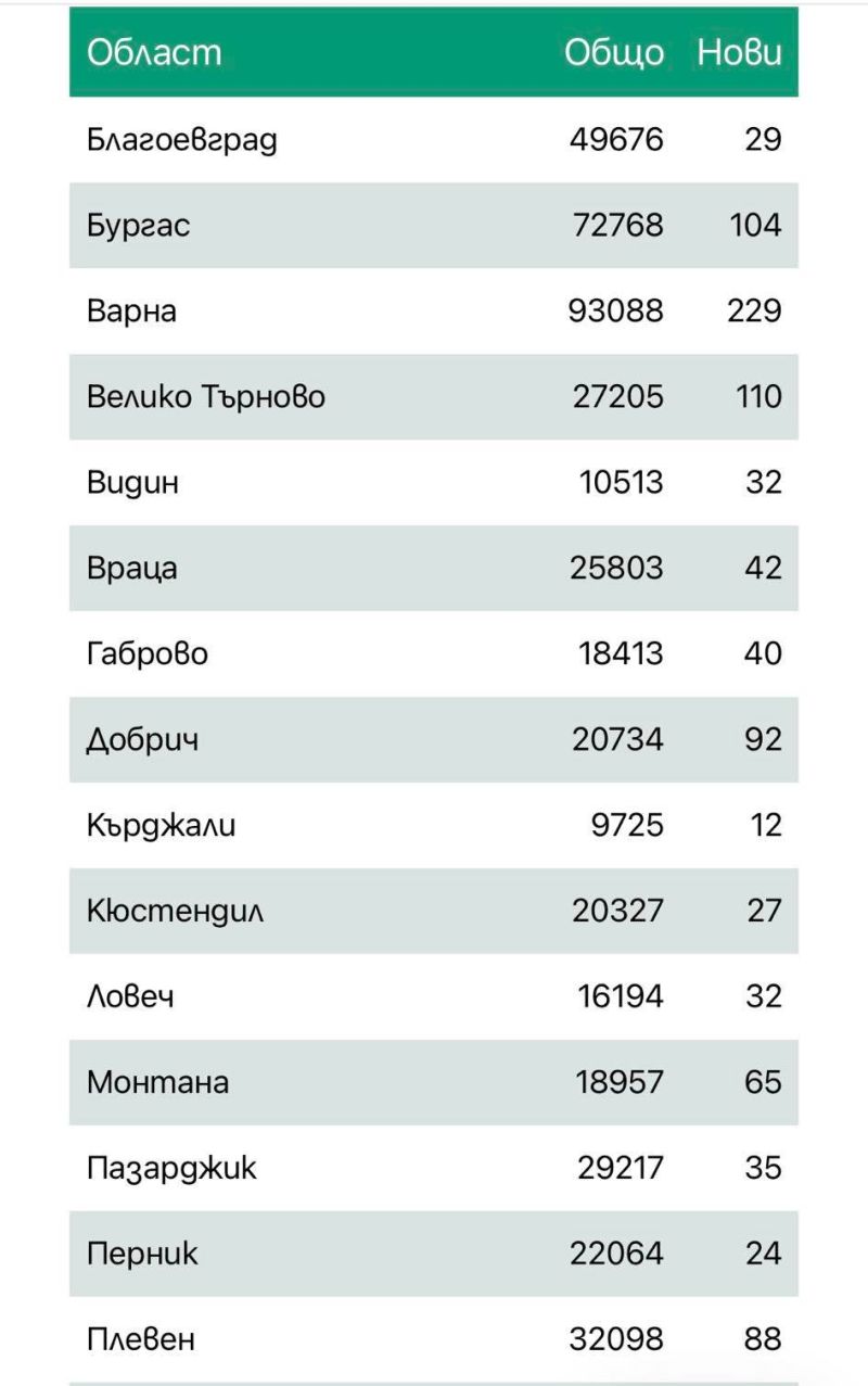 София, Варна и Пловдив са трите области с най-вече нови случаи.