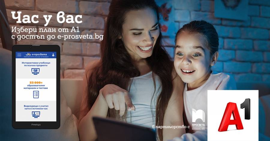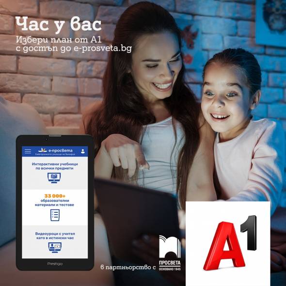 и най-голямата българска издателска група „ Просвета “ слагат началото на, посредством което учениците и техните родители имат опция да употребяват цифрови и интерактивни учебници, както и доста други просветителни запаси с мултимедийната платформа e-просвета. Достъпът до платформата е вероятен с разнообразни проекти на А1, както и посредством свободни абонаменти за потребителите, които нямат услуги от А1.