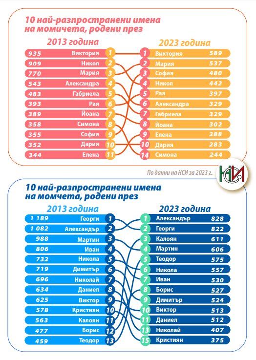 И през 2023 година най-вече новородени момчета са наречени с името Александър – общо 828 бебета. Името Георги носят 822 момченца, а името Калоян – 611 бебета.