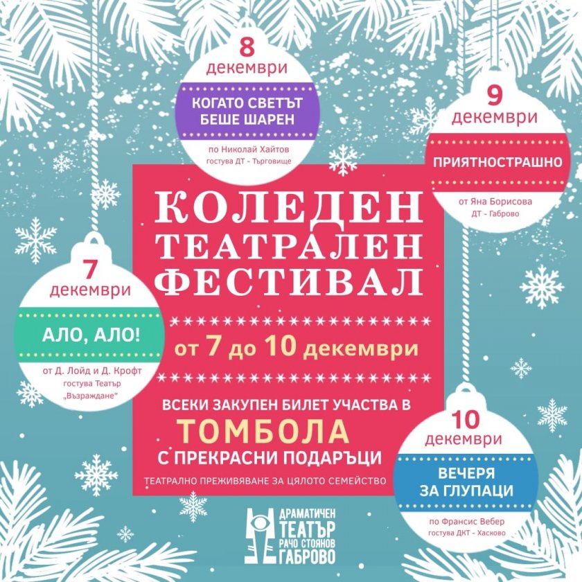 И през тази година в Драматичен спектакъл “Рачо Стоянов ” - Габрово ще се организира Коледен сценичен фестивал. Екипът на театъра кани всички свои фенове да си подарят прелестни театрални мигове преди Коледните и новогодишните празници.