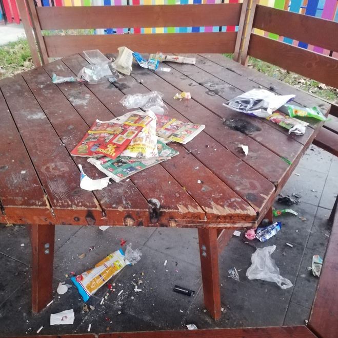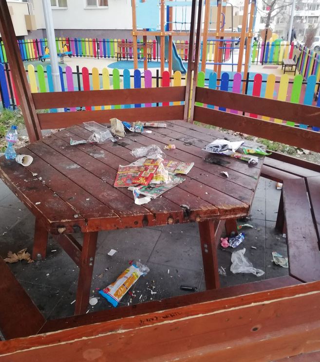 Асеновградчанин показа фотоси на грозна панорама, която се намира на метри от детска площадка. На фрагментите виждаме беседка, която безусловно прелива от боклук. Подът е затрупан с нечистотия, а опаковки се валят по масичката. Според локални поданици отговорни са младежи, които се събират там. " Добро образование на днешните деца ", отбелязва Бисер К.