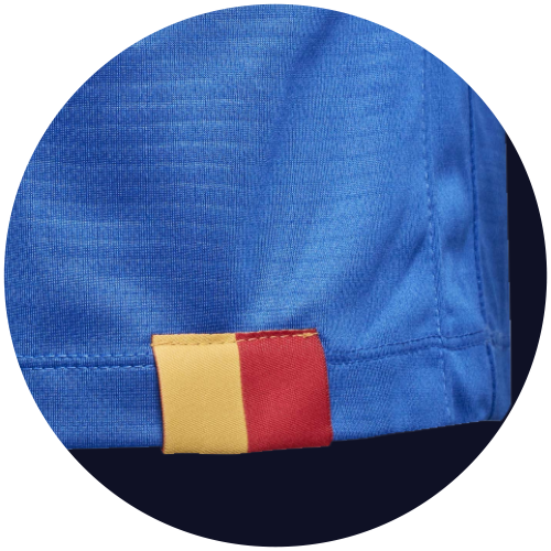 Жълто-червената лента в долния завършек на тениската алегорично припомня за първите екипи, с които клубът е играл при основаването си.