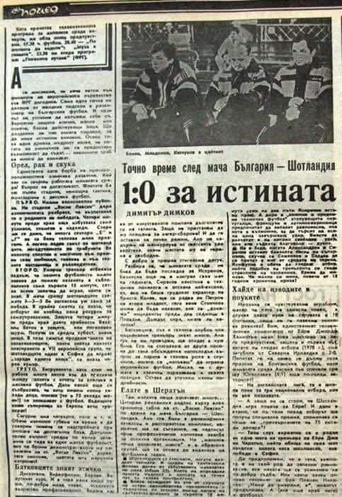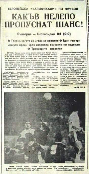 И тогава валеше, както и през днешния ден - 38 години по-късно, а като че ли беше през вчерашния ден... Бойките " гайдари " от Шотландия нанесоха една от най-болезнените ни загуби и най-тежките кошмари в историята на родния футбол.
