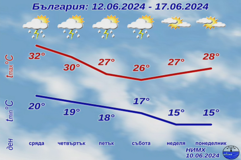 " Тези температури са по-високи от нормалните за юни, само че не са температури, които не са регистрирани досега. Най-топло ще бъде в Горнотракийската равнина, в региона на Пловдив, Стара Загора, централната част на Дунавската низина - това са регионите, където постоянно записваме най-високи температури. По Черноморието са малко по-ниски - 32 градуса, само че заради високата влага, чувството е за по-високи температури. "