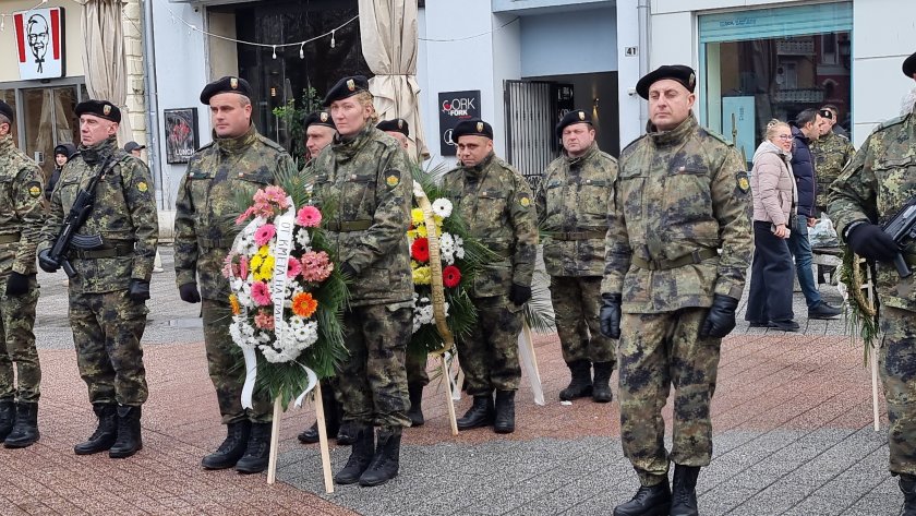 Церемонията на респект и полагане на цветя с присъединяване на боен оркестър се състоя пред паметника на Стамболов на едноименния площад в центъра на града.