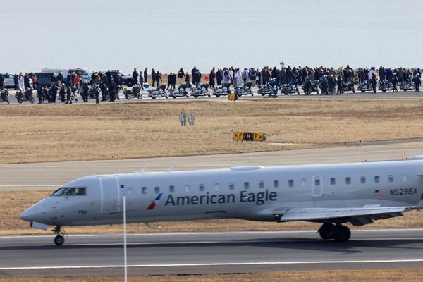 Десетки хора дойдоха с рейсове и бяха ескортирани от полиция до брега на река Потомак, покрай мястото на авиокатастрофата.