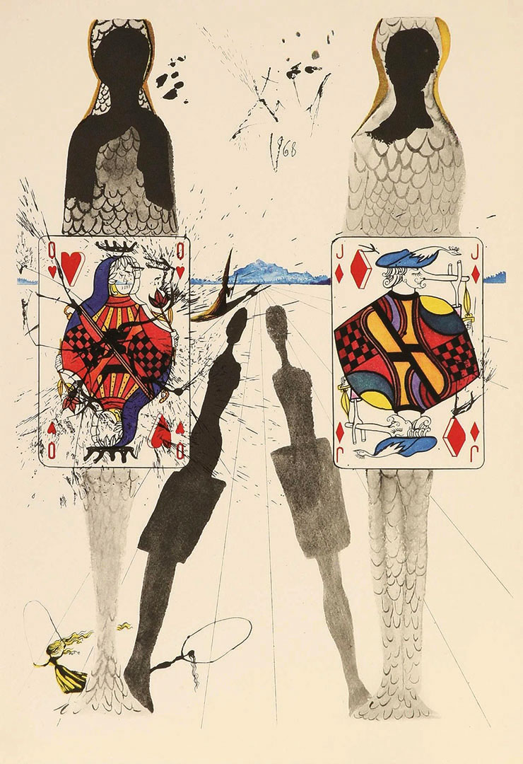 Идеята за съчетаването на текста на Луис Карол с фантасмагоричните видения на испанеца се ражда в главата на редактор на издателство „ Рандъм хаус “.Дали е мощно вдъхновен и в къс период основава 12 хелиогравюри – по една към всяка глава на книгата. Заглавната страница съставлява офорт в 4 цвята.С днешна дата всички подписани от художника хелиогравюри се намират в частни сбирки.Както и 2700-те екземпляра от първото издание от 1969 година. В своята версия Дали вмъква цитати от най-известните си творби.