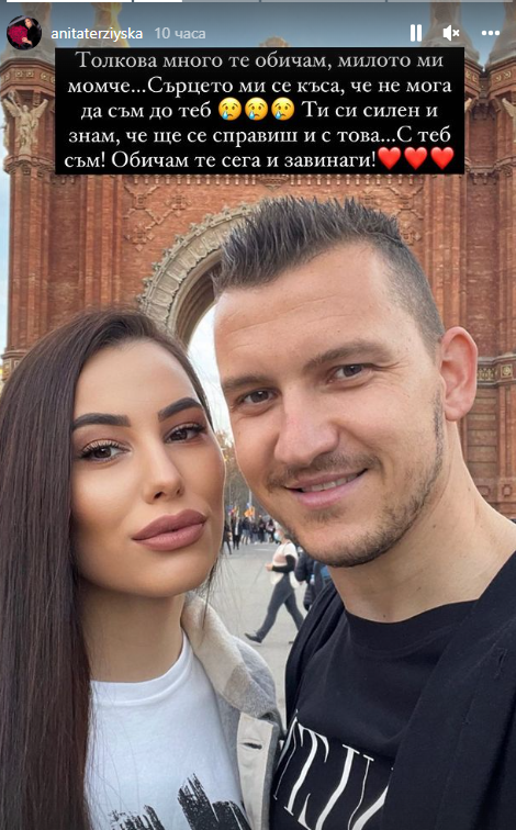 „ Толкова доста те обичам, благото ми момче.Сърцето ми се къса, че не мога да съм до теб. Ти си мощен и знам, че ще се оправиш и с това. С теб съм! Обичам те в този момент и вечно! ", написа Анита в Instagram ", съобщи Българска телеграфна агенция.