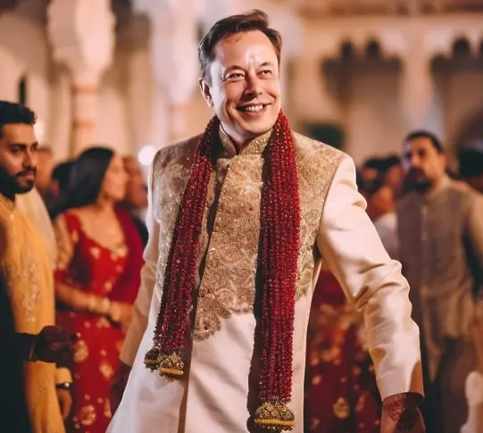 Преди това Мъск беше редактиран върху изображения на себе си като южноазиатски жених, облечен в обичайно облекло, като AI изображението получи отговор „ Страхотно “ от софтуерния бизнесмен.