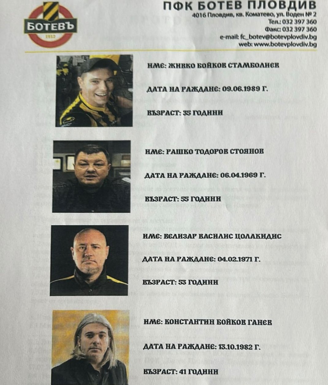 Заповедта от Ботев Пловдив е подписана от новия мощен човек при „ жълто-черните “ – Илиян Филипов, който по документи не заема управителна служба в клуба.
