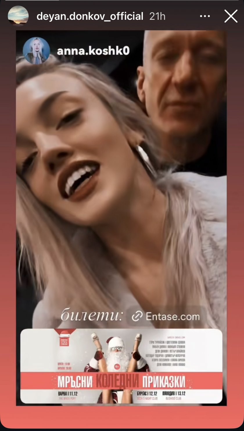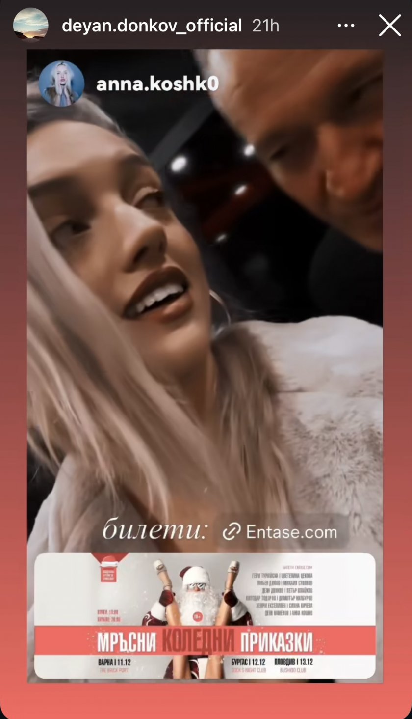 Актьорът показа в Инстаграм стори на Анна Кошко, в което тя по провокативен метод популяризира различен план с присъединяване на Деян, а точно „ Мръсни коледни приказки “. В това литературно четене вземат участие известни писатели и артисти.