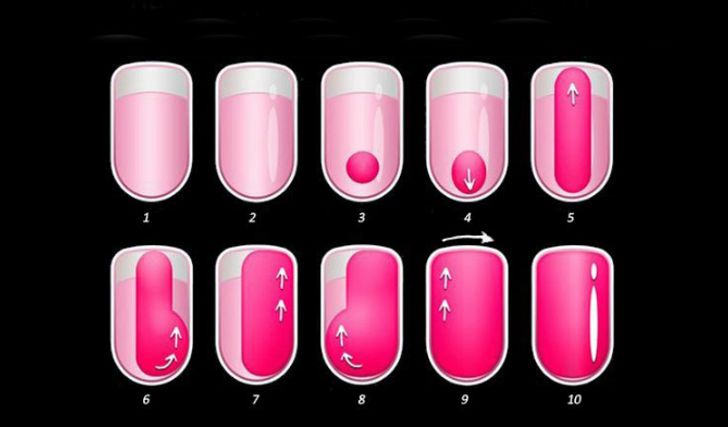 Следвайте стъпките от картинката горе, с цел да имате съвършено лакирани нокти.