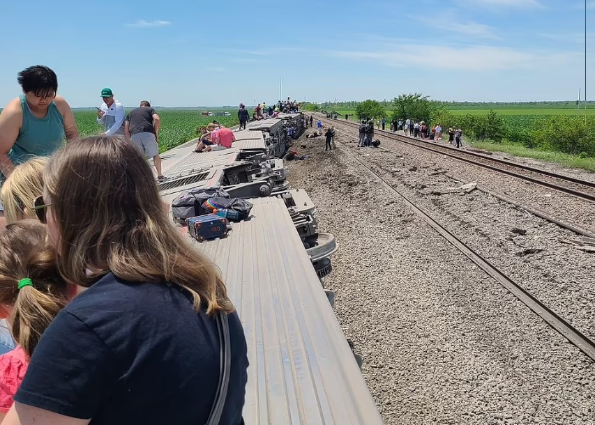 Има опасения, че няколко души са били убити, откакто трен „ Амтрак” дерайлира покрай Канзас Сити в Мисури.