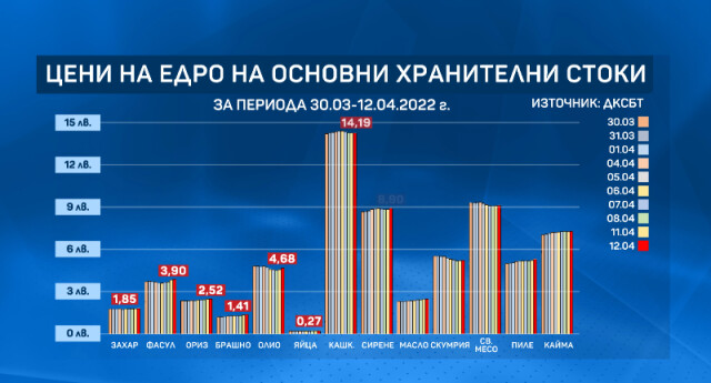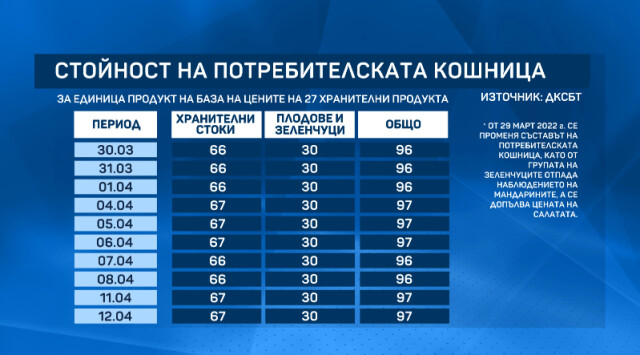 „ Ако в този момент закупим единствено обичайните артикули, като брашно, яйца, сол, олио има 23% разлика по отношение на 2021 година Ако от цялата потребителска кошница закупим по единица от съществени артикули – варива, меса, плодове и зеленчуци е с 21% е по-скъпо “, разясни Иванов.